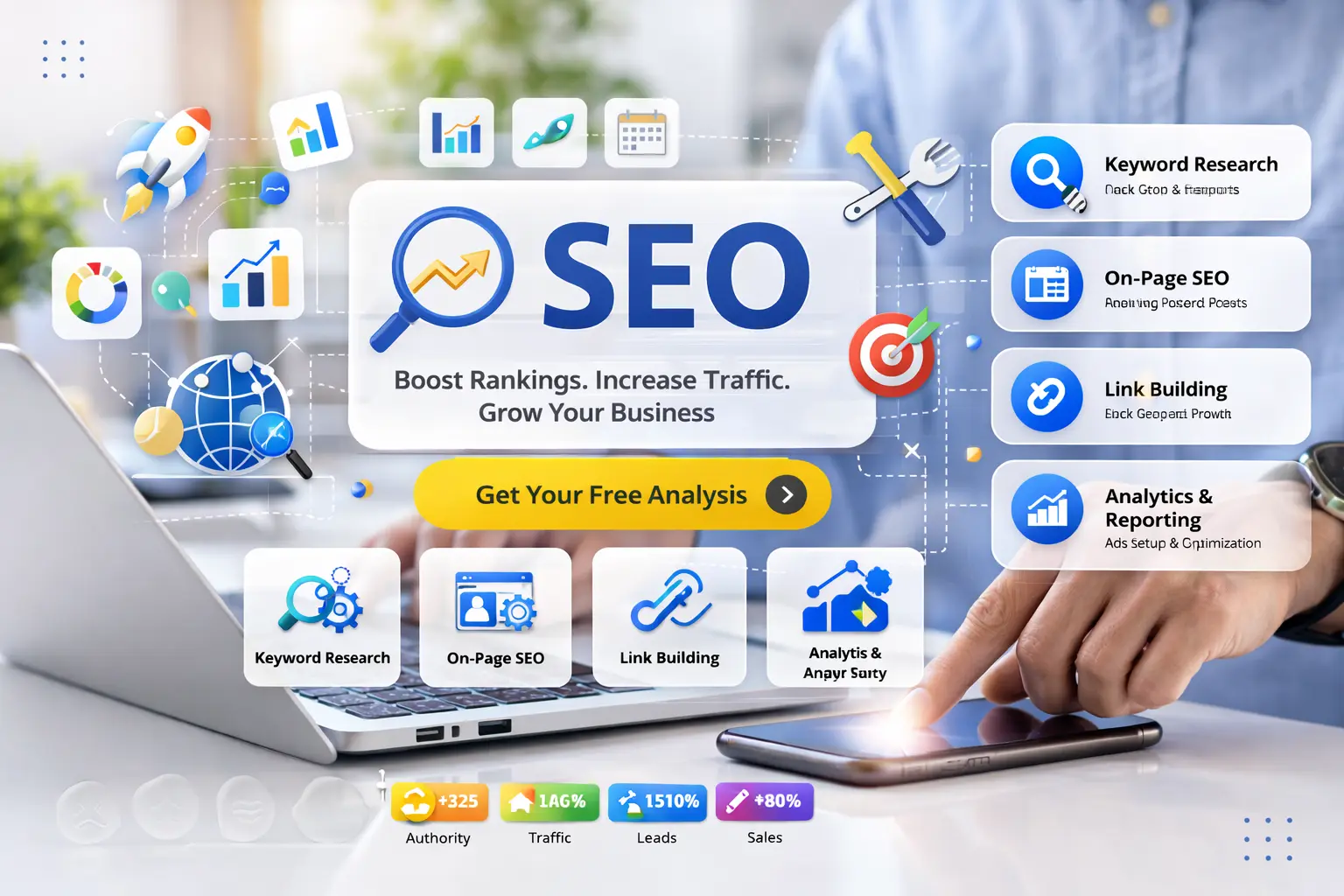 Our expert SEO services help businesses enhance their online presence and maximize their long-term Return on Investment (ROI). Whether you are a local startup, a growing SME, or a large enterprise, we provide comprehensive, data-driven SEO strategies tailored to your specific industry, target audience, and regional market goals.