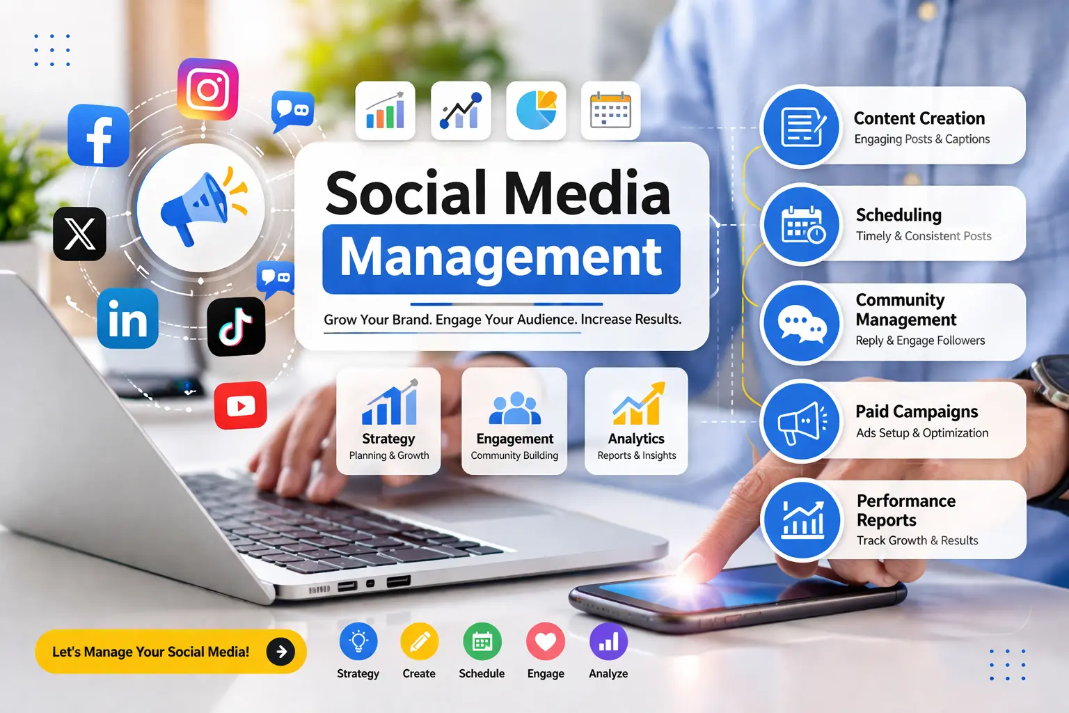 In today's digital-first world, simply having a social media profile is not enough. Businesses need strategic and highly effective social media management to engage their audience, build brand authority, and drive measurable results. Companies across the USA, Australia, Europe, the Middle East (Dubai, Abu Dhabi), and Pakistan are increasingly relying on professional social media management services to maintain a consistent online presence and maximize their marketing ROI.